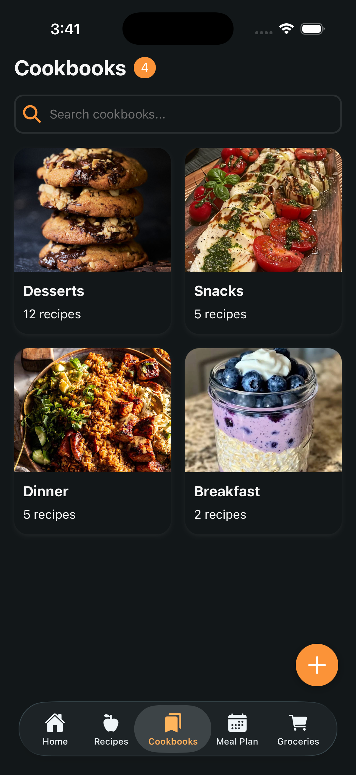 Cookbooks are Seasoned's top-level organizing unit, and you define them however makes sense for your life. Some people organize by meal type — Breakfasts, Weeknight Dinners, Weekend Projects. Others organize by who they're cooking for — Family Meals, Date Night, Meal Prep. Others organize by cuisine — Italian, Asian, Mexican. There's no right answer, and you can always reorganize as your collection grows.